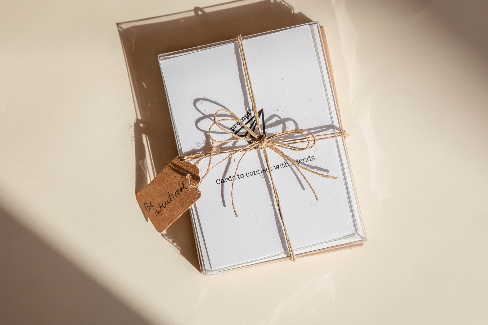 You receive two sets of four cards (each card has a prompt). Keep one set and give the other one to someone you wish to connect with OR ship the second set directly to someone else (click 'Add Gift Options' at check-out to enter their address and a note).