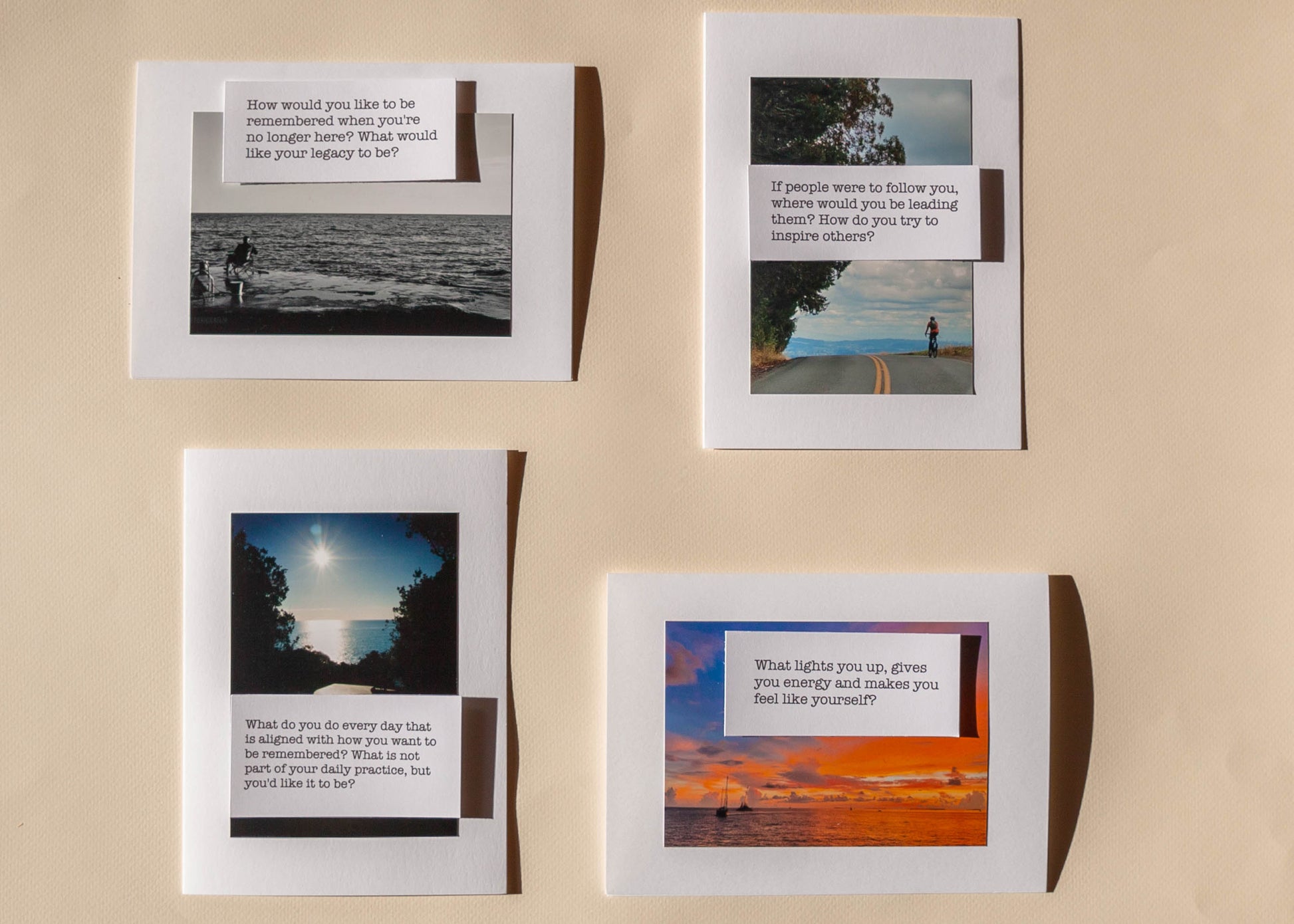 This set of cards paired with prompts is designed to help you connect by reflecting on and sharing thoughts around your legacy, intention and purpose and daily practices to be your best self. It will help you set your intention and learn about the other person's intention, so you can help each other live with purpose